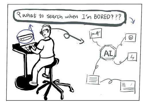 25 semi-structured interviews and 18 surveys were conducted. There were three groups we focused on: students, young professionals and content creators. The average age range was 20 - 26 years old, and 85% of them utilized an existing AI-powered search engine tool daily. Concept sketches were made to represent each target user group.